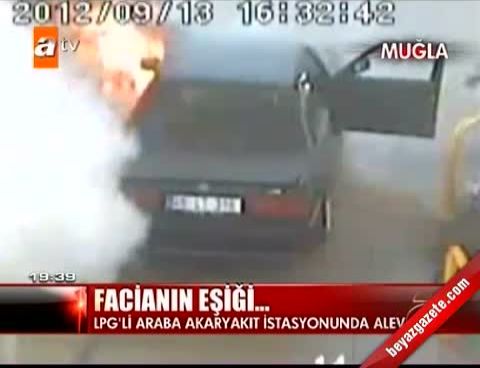 Muğla’nın Milas ilçesinde, istasyondan akaryakıt alan LPG’li otomobil aniden alev aldı.