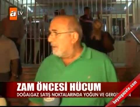 Zamdan etkilenmek istemeyen vatandaşlar, yüklü miktarda doğalgaz aldı. Başbakan Erdoğan'ın katıldığı bir televizyon programında doğalgaza yüzde 10 ile 15 arasında zam yapılacağını açıklaması üzerine Başkentli vatandaşlar, doğalgaz satış noktaların koştu. Kışlık gazlarını almak için sabah saatlerinden itibaren uzun kuyruklar oluşturan vatandaşlar, zamdan etkilenmemek için yüklü miktarda gaz aldı. Doğalgaz satış noktalarındaki bu yoğunluk kapanma saatlerine kadar devam etti. Yoğunluk nedeniyle sıra gelmeyen vatandaşlar ise, gaz alamadıkları için satış noktasındaki çalışanlarla tartıştı.