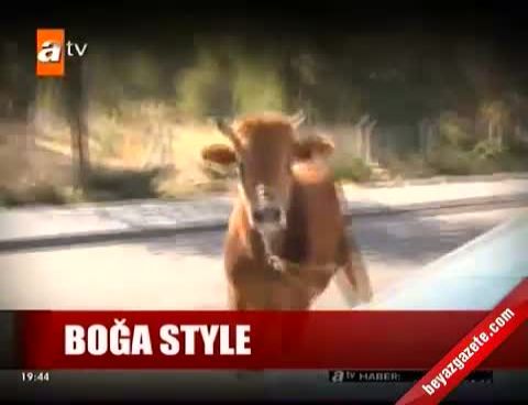 Ankara Pursaklar'da kesilmeye götürülen boğa sahiplerinin elinden kaçarak Esenboğa Protokol Yolu'na çıkınca ortaya komik görüntüler çıktı.