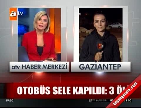 26 Ekim 2012 Cuma günü yayınlandı Gaziantep'te akşam saatlerinde başlayan ve gece geç saatlerde şiddetini artıran yağış sebebiyle oluşan sel suları 1 otobüs, 1 kamyon ve 1 otomobili yoldan çıkardı.