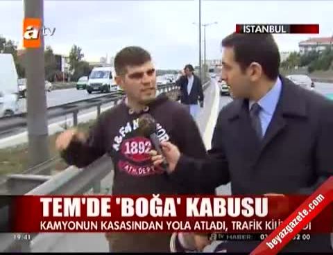 Satıcı Şahin Polat'ın ayarladığı kamyonet danaya yaklaştı. İçlerinden biri aşağıya inerek, dananın boynuna ipi geçirmeyi başardı. Dana sahipleri tarafından yol kenarında bulunan bariyerlere bağlandı. Bu esnada otoyoldaki trafik durdu. Kamyonetin arkasına bağlanan dana, sürüklenerek yol kenarına çıkarıldı. Bir süre ulaşıma kapanan otoyol, dananın çıkartılmasından sonra normale döndü. Satıcı Şahin Polat, danayı sattıklarını ancak ipi kısa olunca kaçtığını belirterek, "Yaklaşık 10 kilometre peşinden koştuk. Trafik altüst oldu. Ancak yakalayabildik. Şimdi kesmeye götürüyoruz." dedi .