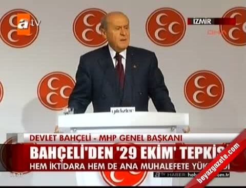 Milliyetçi Hareket Partisi Genel Başkanı Devlet Bahçeli, İzmir’de yaptığı konuşmada, 29 Ekim törenlerinin kaldırılmasıyla ilgili olarak AKP ve CHP’ye ağır eleştirilerde bulundu.