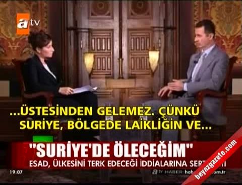 Batı'nın böyle bir müdahaleye başvuracağını sanmadığını söyleyen Esad, bununla birlikte bir müdahale olması halinde kimsenin bunun hesabını veremeyeceğini dile getirdi. Suriye'den ayrılmayacağını vurgulayan Esad, doğduğu ülkede ölmesi gerektiğine inandığını söyledi.