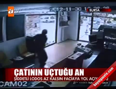 Çatının düşme anı saniye saniye güvenlik kameralarına yansıdı. Bursa’da dün geceden itibaren etkisini hissettiren lodos, hayatı olumsuz yönde etkiliyor. İşe gitmek için yola çıkan vatandaşlar şiddetli rüzgar sebebiyle yolda yürümekte güçlük çekti. Şehreküstü Meydanı’nda vatandaşlar rüzgardan dolayı zor yürürken, bazıları da trafik lambalarına tutunarak rüzgarın etkisinin geçmesini bekledi. Lodos yüzünden evlerin çatılarından düşen parçalar bazı araçlara da zarar verdi.