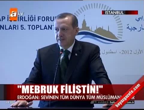 Türk-Arap İşbirliği Forumu Dışişleri Bakanları 5'inci Toplantısı'nda konuşan Başbakan Recep Tayyip Erdoğan, Filistinlileri kendi aralarında yaşadıkları sorunları bir an önce çözmeye çağırırken, "Birbirinizi Allah için sevmenizi istiyoruz" dedi.