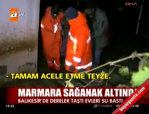 Yağışla oluşan sel yüzünden Burhaniye'de birçok evi su bastı. Öğretmenler Mahallesi'nde oturan Kadriye Çakır , bahçe duvarının yıkılması üzerine evinden çıkınca, sele kapıldı.
