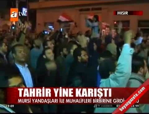 Başkent Kahire'de Cumhurbaşkanlığı sarayını korumak isteyen Muhammed Mursi taraftarıyla muhaliflerin çatışmasına ordu el koydu. Dün gece yaşanan çatışmalarda polis etkili olamayınca iki grup bir birine taşlı sopalı saldırmıştı. Gece saatlerinde duruma el koyan ordu birlikleri grupları gaz bombasıyla dağıtarak tanklarla sarayı korumaya aldı. Çatışmalarda en az 5 kişi hayatını kaybetti. Ordudan yapılan açıklamada, tüm grupların sarayın önünden ayrılması uyarısı yapıldı.