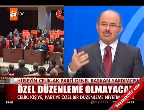 AK Parti Genel Başkan Yardımcısı Çelik, "Dokunulmazlıkların kaldırılmasıyla ilgili kişiye özel, partiye özel bir düzenleme yapmak gibi bir niyetimiz yok" dedi.