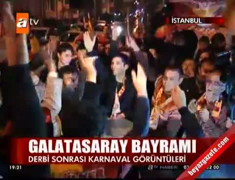 Spor Toto Süper Lig’in 16. haftasında kendi sahasında Fenerbahçe ile oynadığı derbi maçını 2-1 kazanan Galatasaray’da sarı-kırmızılı taraftarlar coşkuyla kutladı.