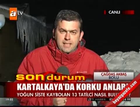 24 Aralık 2012 Pazartesi günü yayınlandı Kartalkaya’da 13 kişi tatilcinin kaybolmasına ilişkin açıklama yapan Bolu Valisi İbrahim Özçimen, “Olay öğle saatlerinde meydana geldi.