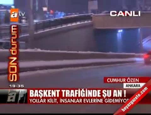Ankara ' da dün gece saatlerinde başlayan kar yağışı, gün boyu etkisini artırarak devam etti. Günler öncesinden yapılan ikazlara rağmen trafiğe hazırlıksız çıkan sürücüler, yollarda kaldı. Belediyenin de uyarılara rağmen yeterli çalışmadığı gözlendi. Kimi araçlar yollarda buz pistindeymiş gibi kayarken, kimi araçlar ise rampa yolları çıkmakta zorlanınca sürücüler, çareyi araçlarından inip yardım beklemekte buldu. Yolda kalan kimi vatandaşlar yeterli kar temizleme ve tuzlama yapılmamasından dolayı yetkililere tepki gösterdi. Bazı vatandaşlar da bunun doğal bir afet olduğunu belirterek kimseyi suçlamanın gereği olmadığını dile getirdi.