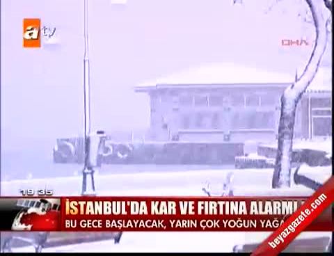 Meteroloji yetkilileri yaptıkları açıklamada, İstanbul 'da kar yağışının sabah erken saatlerde başlayacağını duyurdu. İnternet sitesinden yapılan açıklamada İstanbul için gece saatlerinden itibaren karla karışık yağmur, yarın (Cuma) sabah saatlerinde kar yağışlı olacağı belirtilirken sıcaklığın ise en düşük -1, en yüksek 6 derece olacağı belirtildi. Yetkililer Cumartesi gününden itibaren kar yağışının duracağını ve sıcaklıkların kademeli bir şekilde artacağını ifade etti.