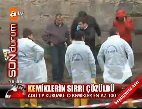 Kazı çalışmalarında elde edilen kemiklerin, ''DNA'larının tespitinin mümkün olup olmadığı ve ölüm tarihlerinin belirlenmesi'' için 17 Ocak 2012 ve 24 Ocak 2012 tarihlerinde Adli Tıp Kurumu Başkanlığına gönderildiği belirtilen açıklamada, şunlar kaydedildi: ''İnceleme sonucunda, tanzim edilen raporda özetle, kemiklerde ölüm sebebini açıklayabilecek herhangi bir bulgu saptanmadığı, bütünlüğü bozulmamış kemik dokuları üzerinde herhangi bir ateşli silah, kesici, delici, ezici alet veya herhangi bir patlayıcı oluşması muhtemel lezyon görülmediği, mevcut kemiklerde en az 100 yıl toprak altında kalmaya bağlı morfolojik değişimler tespit edildi.