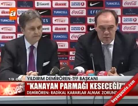 Demirören, devir teslim töreninde yaptığı açıklamada Türk futbolundaki sorunların ertelendikçe büyüdüğünü belirterek, 'Biz de bir an evvel kanayan parmağı kesmek zorundayız. ' dedi.