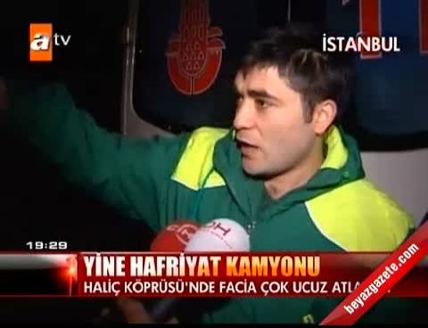 Edinilen bilgiye göre, saat 04.00 sıralarında E-5 otoyolu Halıcıoğlu sapağında, Erdal Temizkan idaresindeki 34 ZL 4566 plakalı boş hafriyat kamyonu, henüz bilinmeyen bir sebeple kontrolden çıkarak bariyerlere çarptı. Sürücü Temizkan kamyonda sıkıştı. Olay yerine yakın bir yerde yol temizliği yapan işçiler, Temizkan'ı kurtarmak için kamyonun yanına koştu. İşçilerin yardımıyla araçtan çıkarılan Temizkan, ambulansla Okmeydanı Eğitim ve Araştırma Hastanesi'ne kaldırıldı