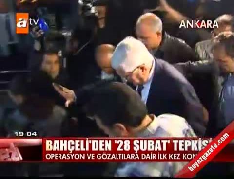 Milliyetçi Hareket Partisi (MHP) Genel Merkezi'nde İl Genel Meclisi Üyeleri Toplantısı'nda konuşan Bahçeli, 28 Şubat süreciyle ilgili yürütülen soruşturma kapsamında aralarında emekli Orgeneral Çevik Bir’in de bulunduğu 31 kişinin gözaltına alınmasını değerlendirdi. 2007 yılından bu tarafa darbe planları veya girişimlerinin Türkiye’yi meşgul ettiğini ifade eden Bahçeli, şöyle devam etti: “Hali hazırda sırayı, 12 Eylül askeri darbesinin failleriyle birlikte 28 Şubat’ın post modern muhtıracıları almış ve Türkiye, belirli periyotlarla darbe soruşturmalarıyla çalkalanan bir ülke görüntüsüne girmiştir. İçeride bölücülük ve terör, dışarıda da kaygan ve sıkıntılı gelişmelerle karşılaşan ülkemiz bu kapsamda çok kritik bir dönemle muhatap hale gelmiştir.”