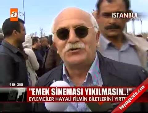 Eylemci grup cadde üzerinde oturarak, basın açıklaması yaptı. Basın açıklamasını grup adına İlhami Nisvan okudu. Açıklamada, “Emek Sineması’nın bulunduğu yerde herhangi bir projeye ikna olmayacağız. Sermayeyle pazarlık yapmayacağız.” denildi. Basın açıklamasının ardından protesto amaçlı ‘Fetih Beyoğlu’ isimli filmin biletlerini, "İkna olmuyoruz, biletinizi kesiyoruz." diyerek hep birlikte yırttı.