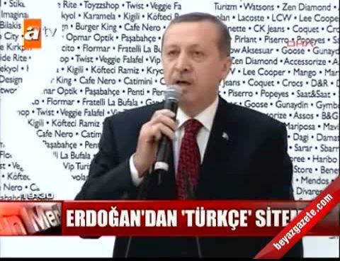 Açılışta konuşan Başbakan Erdoğan, son zamanlarda başta İstanbul olmak üzere yeni inşa edilen konut ve işyeri projelerinde farklı dillerde kelime ve kavramların çok sık kullanıldığına şahit olduğunu ifade ederek, "Bu kelime ve kavramlarının tamamının aslında Türkçe'de çok güzel karşılıkları var. Türkçe, dünya üzerinde 100 milyonlarca insan tarafından konuşuluyor. Türkiye Türkçe'si, hele hele özellikle de İstanbul Türkçe'si ise Türkiye'nin artan gücüne, büyüyen ekonomisine, artan dış ticaretine paralelolarak artık uluslararası bir boyut kazanıyor. Yerli yatırımlarda Türkçe hassasiyetini ben özellikle yatırımcılarımızdan rica ediyorum. Uluslararası yatırımlarda ve özellikle de iç tasarımda Türkçe hassasiyetini görmek istediğimizi özellikle vurgulamak istiyorum. İstanbul elbette küresel düzeyde önemli bir şehirdir, uluslararası bir markadır. Yani biz kendi markalarımızı oluşturacaksak buna çok ihtiyacımız var. Ama Türkçe de artık ülke sınırlarını aşan önemli bir dildir. Burada en zor haliyle TürkçeleşmişTürkçe'yi bile eğer benimsersek, bununla da çok önemli adımlar atmış oluruz. Bu yüzden Türkçe isim ve markaların dünya markasına dönüşmesi için gayret gösterilmesi gerektiğini ayrıca vurgulamak istiyorum" diye konuştu.
