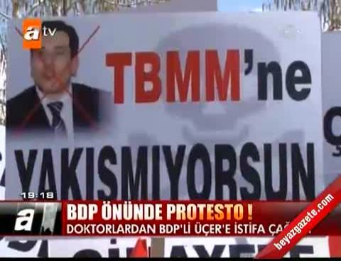 Üçer’in partiden ihraç edilmesini isteyen grup üyeleri, BDP Genel Merkezi önüne siyah çelenk bıraktı. BDP Genel Merkezi önünde toplanan grup üyelerinden bazıları dayak yiyen sağlık çalışanlarını temsilen kolu ve başı sargılı, gözü mor halde eyleme katıldı.