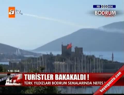 Denizin ve Bodrum Kalesi'nin üzerinden geçen akrobasi timleri güzel görüntüler oluşturdu. Yaklaşık bir saat süren gösteride, uçakların akrobatik hareketleri izleyicilere heyecanlı anlar yaşattı. Uçakların gökyüzünde çizdiği kalp görüntüsü büyük alkış aldı. İlköğretim öğrencileri ise gösterinin gerçekleştiği Kumbahçe sahilinde Türk Bayrağı açtı.