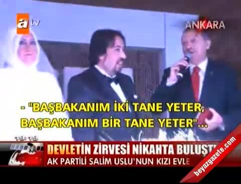 Ankara Büyükşehir Belediye Başkanı Melih Gökçek'in kıydığı nikahta, TBMM Başkanı Cemil Çiçek ve Başbakan Recep Tayyip Erdoğan'ın yanı sıra Başbakan yardımcıları Bülent Arınç, Beşir Atalay ve Bekir Bozdağ da Hilal Uslu-Cem Yılmaz çiftinin şahitleri oldu. Başbakan Erdoğan, evlilik cüzdanı vermeden önce 3 çocuk isteğini yeniledi. Genç çifte bir ömür boyu mutluluk dileyen Başbakan Erdoğan, "Allah kimseye evlat acısı göstermesin. En kötü günleri bugünkü gibi olsun aynı yastıkta kocasınlar" dedi.