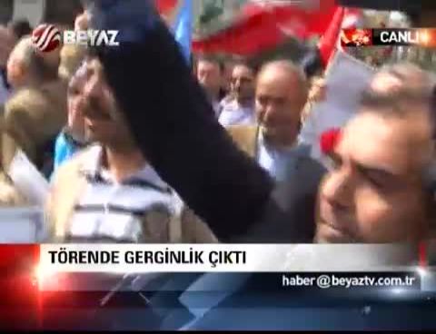 Marşın tamamlanmasının ardından grup kürsüye yürüyerek kürsüyü devirmeye çalıştı. Sivil polisler, grubu sakinleştirdi .