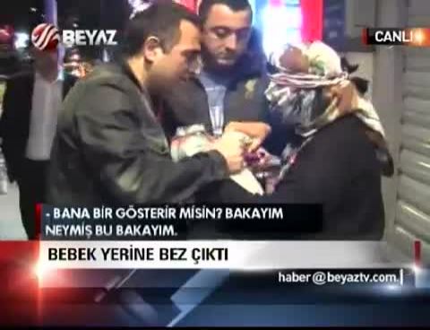 Eski giysileri kundağa koyup bebek süsü veren kadının, bu şekilde duygu sömürü yaptığı ve binlerce insandan para topladığı ortaya çıktı. Taksim Meydanı, Sıraselviler Caddesi ve İstiklal Caddesi gibi kalabalık yerlerde, bir kadının bebeği ile dilencilik yaptığı ve bebeğe hor davrandığı ihbarı üzerine, Beyoğlu Belediyesi zabıta ekipleri hareke geçti. Söz konusu kadın, zabıta ekiplerince bir süre takip edildi. Sıraselviler Caddesi’nde bir köşeye oturup dilenmeye çalışan kadının yanına gelen zabıta ekipleri, kadından bebeği göstermesini istedi. Kadın ısrarla bebeği göstermek istemedi. Bunun üzerine zabıta ekipleri zorla kadının elinden kundağı aldı. Kundakta bir bebek olduğunu düşünen zabıta, bebek süsü verimleş bezleri görüce şaşkına döndü. Öfkelenen zabıta memuru, “Milletin duyguları ile oynuyorsunuz. Milleti kandırıyorsunuz.” diye tepki gösterdi. Araca bindirilerek Zabıta Müdürlüğü’ne götürülen kadına Kabahatler Kanunu’na göre işlem yapıldığı öğrenildi.