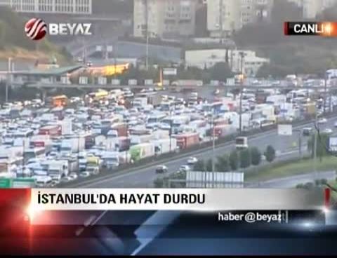 İstanbul’da Fatih Sultan Mehmet ve Haliç köprülerinde başlatılan bakım ve onarım çalışmaları nedeniyle sıkışan trafikte kalan sürücüler, geri geri giderek E-5’ten çıkmaya çalıştı.