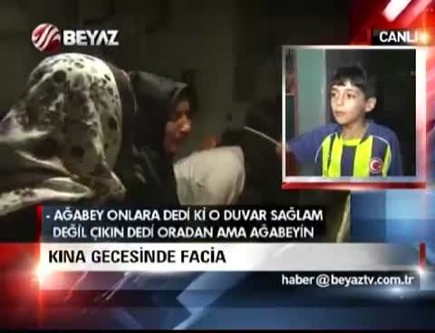 Olay, Merkez Yıldırım İlçesi Çınarönü Mahallesi Atilla Sokak'ta meydana geldi. Hasan Kahraman, 3 katlı evinin terasında, kızı Sezgin için kına eğlencesi tertip etti. Davetliler arasındaki 9 kişi terasın duvarına yaslandı. Yaslandıkları duvarın çökmesi sonucu, dengelerini kaybeden Sacide Aydın ve Birgül Ertaş aşağı düşerek ağır yaralandı.