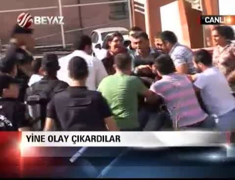 Sultangazi’de polis merkezine yönelik saldırıda ölen teröristin cesedini almak için Adli Tıp Kurumu'na gelen bir grubun, DHKP-C ve canlı bomba lehine slogan atması üzerine polis gruba müdahale etti.