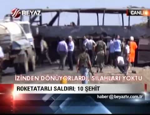 Bingöl’de haftasonu görevden dönen Çevik Kuvvet ekibine bombalı saldırıda 8 polisi şehit eden PKK’lı teröristler bu olaydan iki gün sonra bugün de askeri konvoya uzun namlulu silahlar ve roketatarlarla saldırdı. Elazığ’dan, Muş ve Van’a giden silahsız ve sivil kıyafetli 200 askerin bulunduğu konvoydaki otobüslerden biri roket isabet etmesi sonucu alev aldı, saldırıda 9 asker şehit oldu, 6’sı ağır 70 asker de yaralandı.