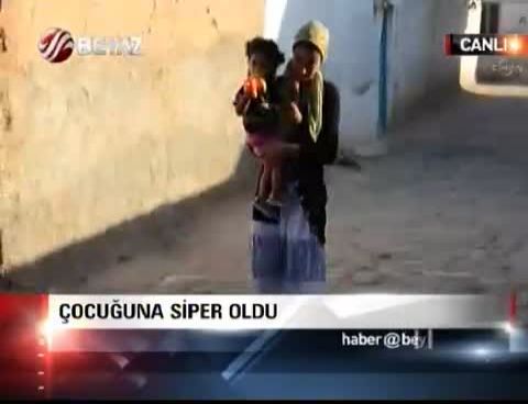 Çocuğuna siper oldu