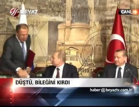 Kaldığı otelde düşerek el bileğini inciten Lavrov, Dolmabahçe’deki Başbakanlık Çalışma Ofisi’nde ‘iki ülkede bulunan askeri şehitlik ile ilgili işbirliği anlaşması imza töreni’ne geç kalmamak için hastane yerine önce imza törenine gitti. Lavrov’un antlaşma metnine imza atarken sol elindeki şişkinlik ise dikkat çekti. Lavrov, metni imzaladıktan sonra makam aracıyla ofisten çıkarak hastane gitti. Lavrov, akşam saat 16.59'da Taksim İlkyardım Eğitim ve Araştırma Hastanesi'ne giriş yaparak Ortepedi bölümünde tedavi oldu. Lavrov, bileğine yapılan alçının ardından saat 18.00 sıralarında hastaneden ayrıldı .