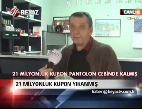 Süper Loto’nun geçen 22 Kasım çekilişinde 21.7 milyon liralık ikramiyenin çıktığı Kayseri’de oynanan kuponun, İzmir’de oturan dar gelirli bir talihliye ait olduğu; ancak pantolonun cebinde farkedilmeden yıkandığı için bazı rakamlarının okunamadığı ileri sürüldü. Kimliği açıklanmayan talihli, avukatı aracılığıyla Milli Piyango İdaresine başvurup, ikramiyeyi alma girişinde bulundu.