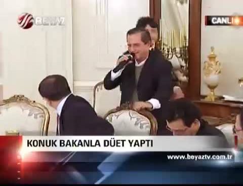 Ekvador Dışişleri, Ticaret ve Entegrasyon Bakanı Ricardo Patino ise yemek sonrası gerçekleştirilen kültürel programda sahnede söylenen şarkılara eşlik etmek üzere Dışişleri Bakanı Davutoğlu'nu kolundan tutarak sahneye çağırdı. Kalkmamak için bir süre direnen Davutoğlu, daha sonra sahneye gelerek sanatçının elindeki kağıda bakıp şarkıyı Ekvadorlu bakanla birlikte söyledi