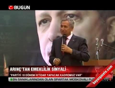 'Tüm Türkiye olarak, AK Parti'nin üç dönem iktidarını değil, düzgün gidersek, parçalanmazsak, içimizdeki fitneler uyanmazsa, birbirimizle kardeş olduğumuzu hiç unutmazsak, 10 dönem iktidarını göreceğiz inşallah'' diyen Arınç, iktidar için gerçek anlamda bir rakiplerinin olmadığını ifade ederek, ''Biz gidersek kim gelecek, kim gelebilecek? 'Ben varım, ben iktidar olacağım' diyen genel başkan duyuyor musunuz? Yüzde 10'u geçince sevinçten gözyaşı dökenler, yüzde 25'e, 'bu da fena değil' diye şükredenler var. Biz, yüzde 50'lerin üzerini konuşuyoruz'' şeklinde konuştu.