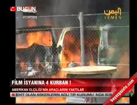 Yemen emniyet güçlerinden edinilen bilgiye göre, Sana'daki Amerikan Büyükelçiliği binasına girmek isteyen göstericilere polis müdahale etti. Müdahale esnasında 4 gösterici öldü, en az 15 kişi de yaralandı. 5 aracın ateşe verildiği olaylarda büyükelçilik binasının camlarının kırıldığı belirtildi.