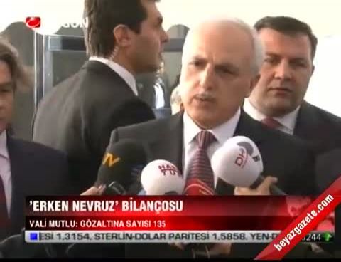 Vali Mutlu, Özel Esayan Ermeni Lisesini ziyareti sırasında gazetecilerin, dünkü izinsiz nevruz gösterisi sırasında yaşanan olaylara ilişkin sorularını yanıtladı. Gazetecilerin, ''İstanbul'da dünkü olaylarda gözaltına alınanların sayısı arttı mı?'' sorusuna ''Artış değil, dünkü sayı 135'ti. Dünden bugüne herhangi bir artış da yok. Sayımız şu anda 135'' dedi.