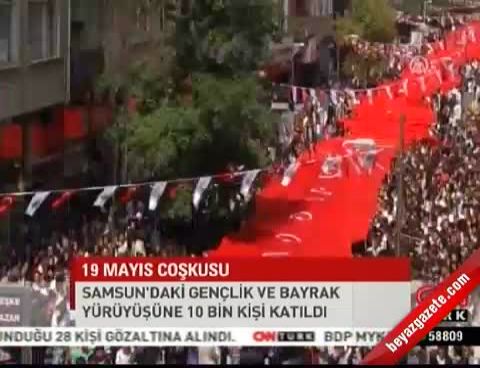 Atatürk'ün Samsun'a çıkış tarihi olan 19 Mayıs 1919'un 93. yıl dönümü etkinlikleri kapsamında Samsun Valiliği'nce yaptırılan 1919 metre uzunluğundaki Türk Bayrağı öğrencilerin omuzlarında şehir merkezinde gezdirildi.