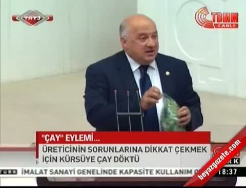 Bayraktutan, konuşmasının sonunda bir poşet yaş çay yaprağını Genel Kurul kürsüsüne döktü. Bayraktutan, “Bugün çay üreticileri çayı alıyor ve böyle döküyorlar. Bu ciddi bir sorun. Bunu size ancak böyle anlatabilirdim” diye konuştu.