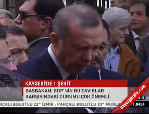 Orbey’in Türk Bayrağı’na sarılı tabutunun arkasından camiden çıkan Erdoğan, basın mensuplarının Kayseri’nin Pınarbaşı ilçesinde yaşanan bombalı saldırı ile ilgili soruları cevapladı. Başbakan Erdoğan, olayın canlı bomba saldırısı olduğunu ifade etti.