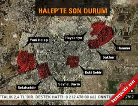 Bu arada, Halep'in Firdevs, Ensari, Ancera ve Zahara bölgelerinde ordunun helikopter destekli geniş operasyonlar düzenlediğini, güvenlik güçlerinin ağır silahlarla yerleşim birimine ateş açmasında ölü ve yaralının olduğunu kaydeden yerel kaynaklar, Salahaddin bölgesinde nizami ordu ile Özgür Suriye Ordusu arasında şiddetli sokak çatışmaların yaşandığını ifade etti.