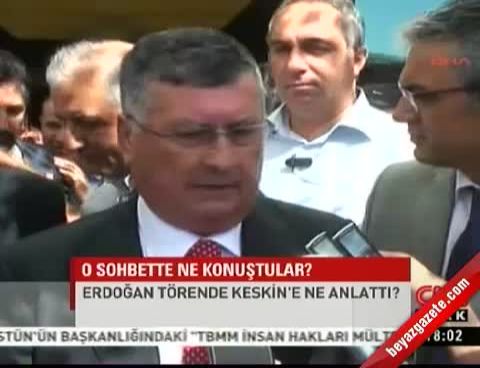Keskin, ziyarette gazetecilerin, 30 Ağustos Zafer Bayramı töreninde Başbakan Recep Tayyip Erdoğan ile yaptığı sohbeti hatırlatması üzerine, Başbakan Erdoğan'a ''BDP Genel Başkanı Selahattin Demirtaş'ın Şemdinli- Çukurca arasındaki 400 kilometrekarelik bölgenin PKK'nın denetiminde olduğu'' yönündeki açıklamasının doğru olup olmadığını sorduğunu belirtti.