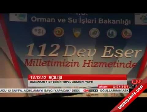 Açılışlar İstanbul, Artvin, Diyarbakır, Aydın, Malatya, Sinop ve Antalya’daki tesislerle kurulan canlı bağlantılarla Başbakan Erdoğan tarafından; 12.12.2012 tarihinde yapıldı. 112 adet hizmet ve eserin açılışı ile ilgili reklam afişlerinde de tarih vurgulanarak: “Geleneği bozmadık. 10.10.2010’da 110 tesisi, 11.11.2011’de 111 tesisi hizmete aldık. Bugün de toplam maliyeti 16 milyar TL olan 112 dev tesisi milletimizin hizmetine sunuyoruz.” denilmişti. Programın başında Orman ve Su İşleri Bakanı Veysel Eroğlu, eski Enerji ve Tabii Kaynaklar Bakanı Recai Kutan birer konuşma yaptı. Daha sonra da kürsüye Başbakan Erdoğan geldi. Erdoğan, konuşmasının sonunda programa katılan bakanları, milletvekillerini ve aralarında Recai Kutan’ın da bulunduğu davetlileri sahneye davet etti ve sırasıyla açılışları gerçekleştirdi. Açılış programında ilk olarak Artvin’e bağlantı yapıldı ve Erdoğan’ın “Ya Allah Bismillah” deyişiyle açılışlar gerçekleştirildi.