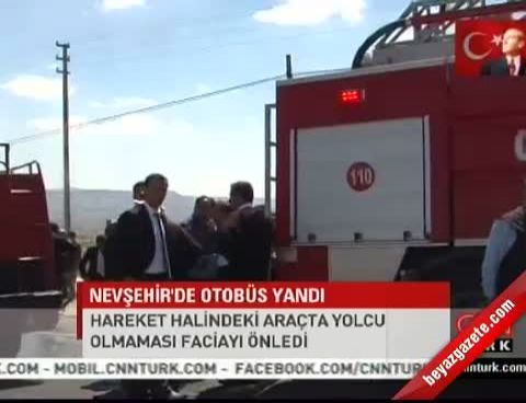 Nevşehir’de bir seyahat firmasına ait olan otobüs, Ürgüp ilçesinde bulunan yolcuları almak üzere hareket halinde iken Ortahisar beldesi yakınlarına geldiği sırada, arka kısmından yanmaya başladı.