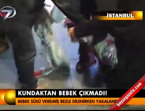 Eski giysileri kundağa koyup bebek süsü veren kadının, bu şekilde duygu sömürü yaptığı ve binlerce insandan para topladığı ortaya çıktı. Taksim Meydanı, Sıraselviler Caddesi ve İstiklal Caddesi gibi kalabalık yerlerde, bir kadının bebeği ile dilencilik yaptığı ve bebeğe hor davrandığı ihbarı üzerine, Beyoğlu Belediyesi zabıta ekipleri hareke geçti. Söz konusu kadın, zabıta ekiplerince bir süre takip edildi. Sıraselviler Caddesi’nde bir köşeye oturup dilenmeye çalışan kadının yanına gelen zabıta ekipleri, kadından bebeği göstermesini istedi. Kadın ısrarla bebeği göstermek istemedi. Bunun üzerine zabıta ekipleri zorla kadının elinden kundağı aldı. Kundakta bir bebek olduğunu düşünen zabıta, bebek süsü verimleş bezleri görüce şaşkına döndü. Öfkelenen zabıta memuru, “Milletin duyguları ile oynuyorsunuz. Milleti kandırıyorsunuz.” diye tepki gösterdi. Araca bindirilerek Zabıta Müdürlüğü’ne götürülen kadına Kabahatler Kanunu’na göre işlem yapıldığı öğrenildi.