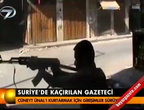 Suriye'nin Halep kentinde kaybolan Türk kameraman Cüneyt Ünal'ın görüntüsü, Suriye'nin resmi televizyon kanalı El-Ahbariye'de yayımlandı.