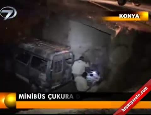 Minibüs çukura düştü