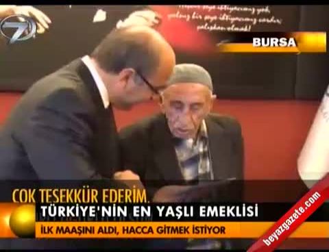 Bursa'da, SGK 'dan 104 yaşında emekli olmaya hak kazanan İbrahim Eren, ilk maaşını almanın mutluluğunu yaşadı.