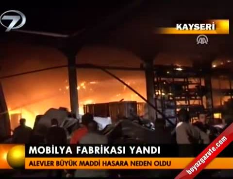Kayseri Serbest Bölgesi'nin Sekizinci Caddesi'nde mobilya üretimi yapan fabrikada akşam saatlerinde yangın çıktı. Biranda büyüyen yangına birçok kuruma ait itfaiye ekipleri birlikte müdahale etti. Kısa zamanda alevlerin fabrikayı tamamen sarması üzerine itfaiye ekipleri yangını söndürmekte zorlandı.